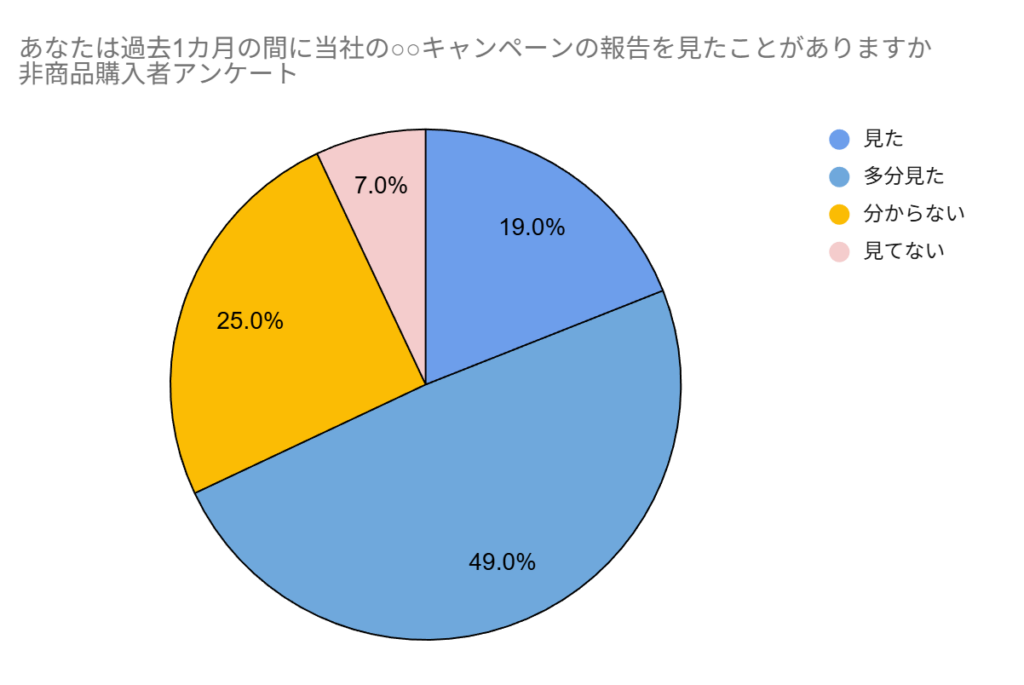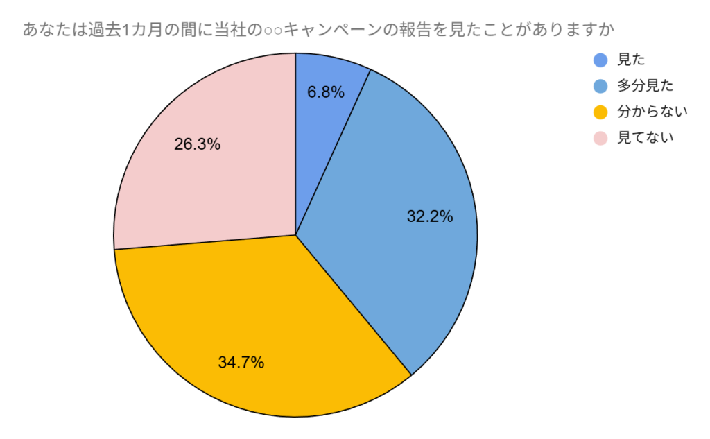 「あなたは過去1カ月の間に当社の○○キャンペーンの報告を見たことがありますか」というような集計で、
